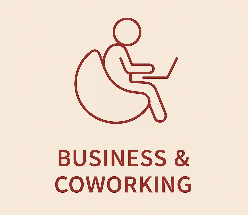 Perfect for combining work with relaxation, the coworking area allows for total focus in a peaceful setting, while the meeting room is ideal for productive business gatherings.